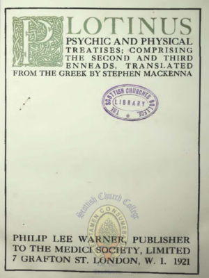 Plotinus The Psychic and Physical Treatises