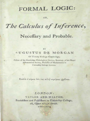 Formal Logic The Calculus of Inference Necessary and Probable